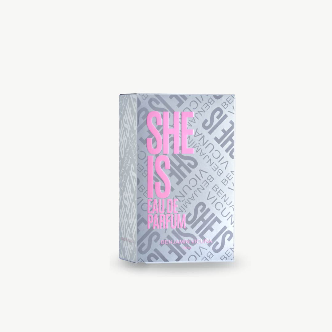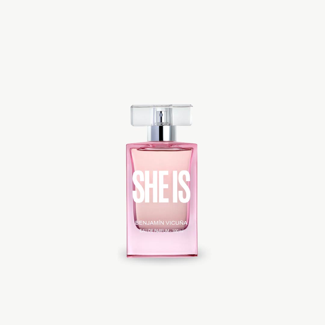SHE IS es una fragancia femenina que celebra la autenticidad, la dulzura con carácter y la fuerza serena de ser una misma. Su aroma cuenta una historia de atracción sutil pero intensa, un viaje sensorial que despierta emociones y refleja ese magnetismo natural que nace desde adentro. Porque cuando te mostras tal como sos, el match perfecto no se busca... simplemente ocurre.