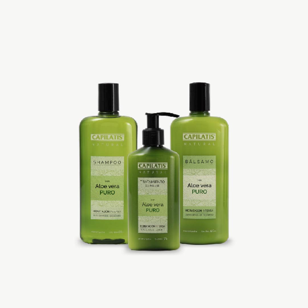 La línea Aloe Vera Puro devuelve al cabello su grado de hidratación ideal, aportando suavidad y brillo natural.