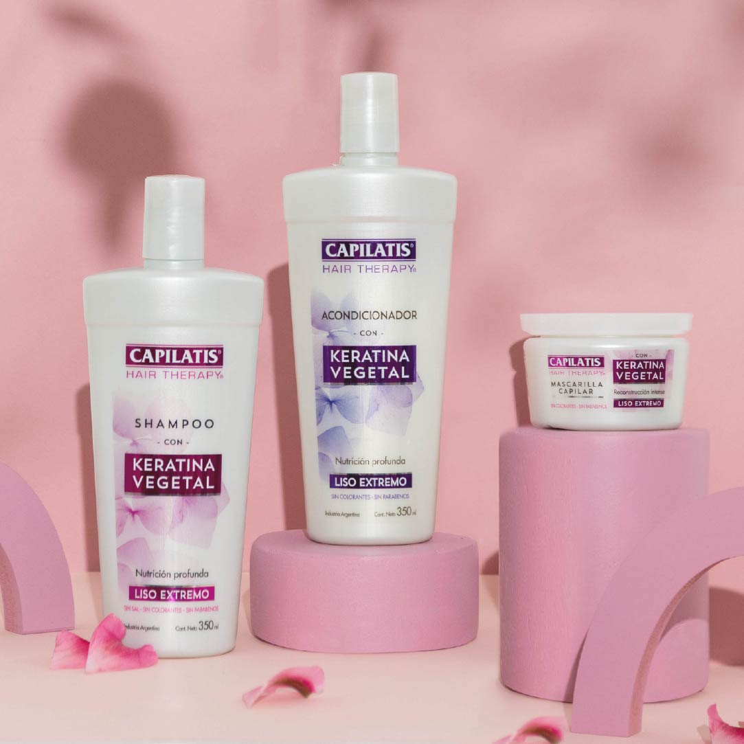La línea Keratina Vegetal es ideal para cabellos muy dañados, tratados con color o alisados. Está especialmente diseñada para recuperar la salud de las fibras capilares deterioradas. Normaliza la estructura del cabello dañado o tratado químicamente y ayuda a mantener el alisado.