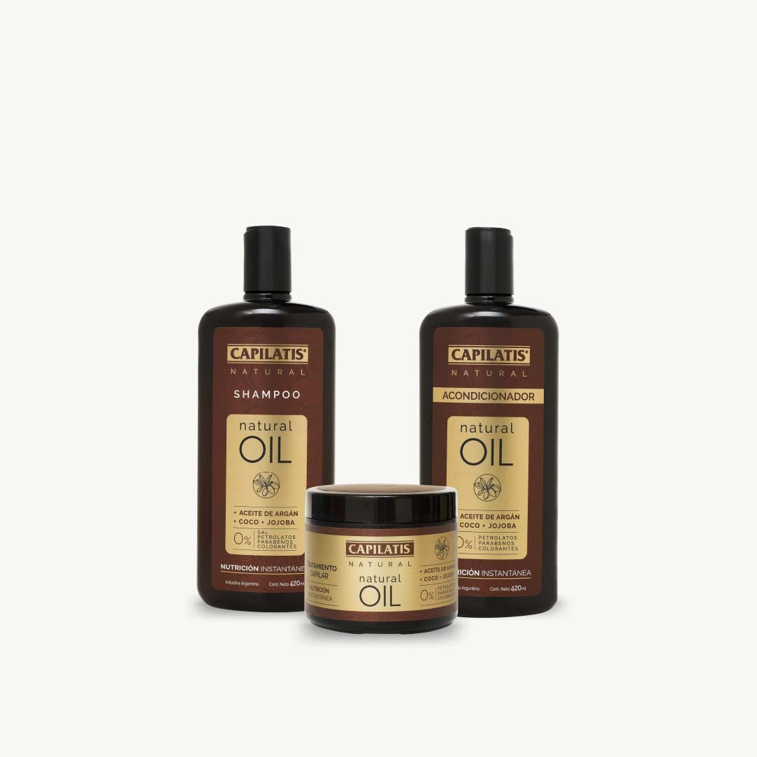 La línea Natural Oil está formulada con Argán de Marruecos y aceites naturales de coco y jojoba para brindar nutrición instantánea. Repara, nutre y protege los cabellos extremadamente secos, apagados y débiles.